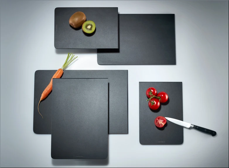 Continenta. Verarbeitet wird eine hochfeste Holz-Papier-Faser, die extrem belastbar und bis zu 180° C hitzebeständig ist. Dadurch werden die Schneide- und Servierbretter zudem spülmaschinenfest, sind aber gleichzeitig messerschonend und besonders hygienisch. Die ideale Grundlage für Schneidebretter und die Verarbeitung von Lebensmitteln.