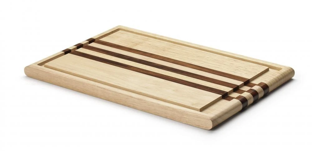 Tranchierbrett aus Gummibaumholz mit Streifen aus Akazienholz. Schneiden wie die Profis. Das Tranchierbrett überzeugt mit seiner hochwertigen Verarbeitung und seinem modernen Design.