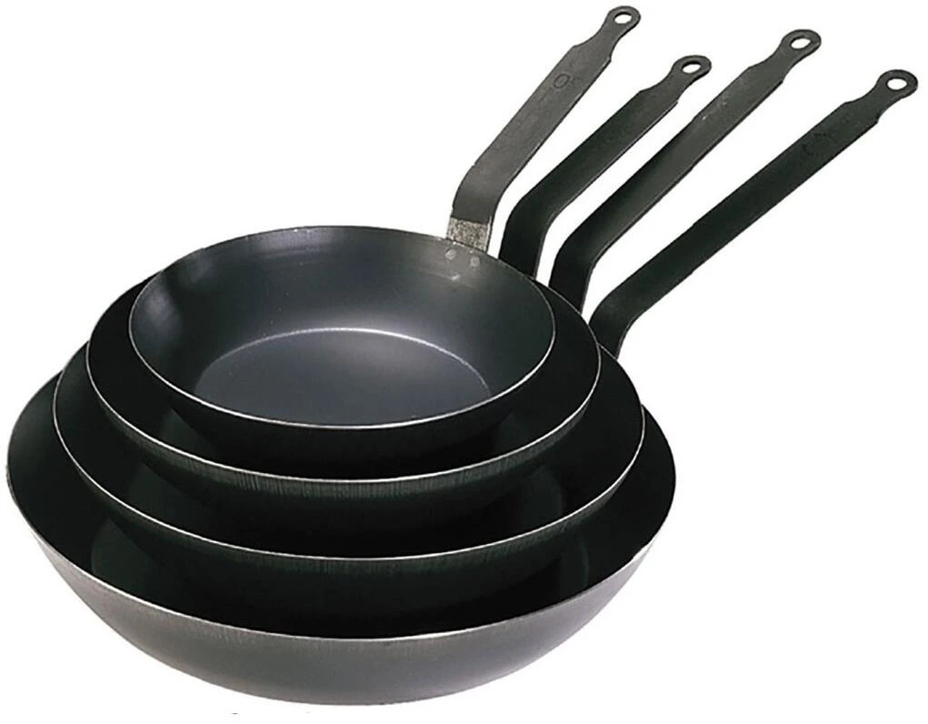 Die hochwertigen Eisenpfannen der Serie La Lyonnaise mit einem Griff aus vernietetem Bandstahl sind besonders langlebig und für alle Herdarten, außer Induktion, geeignet.