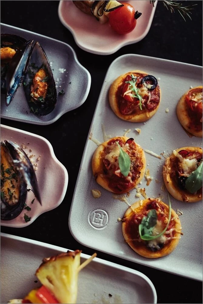 Kombinieren Sie verschiedene Formen und Farben von Emile Henry für eine attraktive Gourmet-Fingerfood-Präsentation. Verbringen Sie ganz entspannt weniger Zeit damit, Geschirr in der Küche zu sortieren und mehr Zeit damit, Ihre Party und das Essen zu genießen.