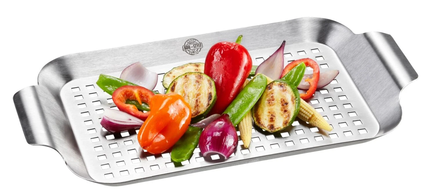 Die BBQ Grillpfanne ist ideal für Grillgemüse, Fisch oder Fleisch sowie für alle Pfannengerichte vom Grill. Dank der Lüftungsschlitze im Boden kann die Hitze optimal zirkulieren und das Grillgut wird knackig geröstet. Hergestellt aus hochwertigem Edelstahl und spülmaschinengeeignet. Die Grillpfannen sind wiederverwendbar und damit besonders nachhaltig.