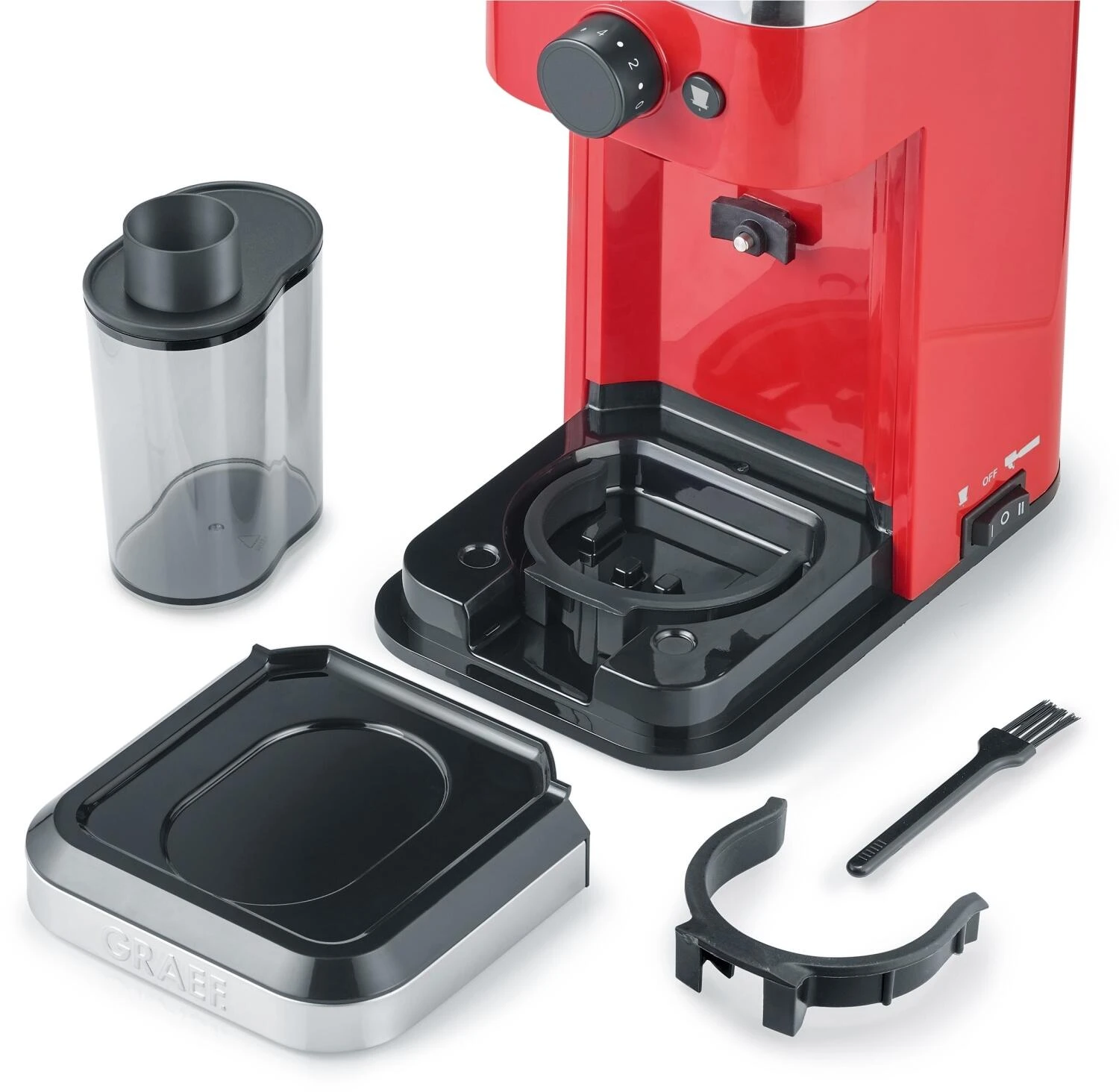 Kaffeemühle CM 503, rot. Die automatische Portionierung und 140 Mahlgradeinstellungen der Kaffeemühle machen jeden Kaffeewunsch war. Ob Filterkaffee, French Press oder Espresso, nichts geht über das feinste Aroma selbstgemahlener Kaffeebohnen.