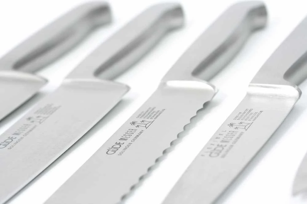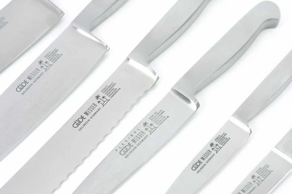 - Güde Messer niemals ungereinigt liegen lassen – besonders nach dem Umgang mit säurehaltigen Nahrungsmitteln.