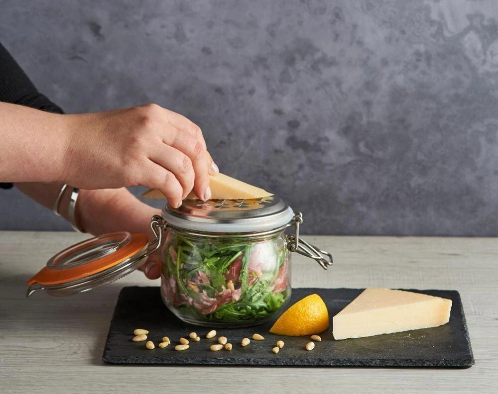 Kilner Reibe mit Vorratsglas. Reiben Sie Käse, Nüsse, Gemüse und Schokolade im Handumdrehen! Der Abrieb fällt direkt ins Glas und kann dort sogar aufbewahrt werden.