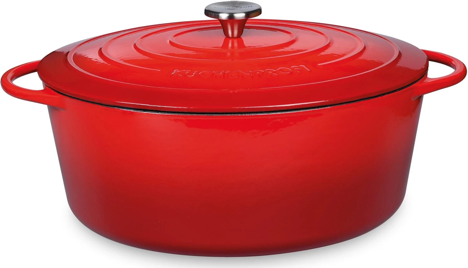 Eigenschaften des Küchenprofi Bratentopf oval aus Gusseisen: