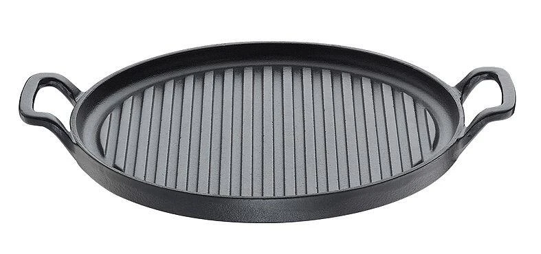 Küchenprofi Grillpfanne Provence rund aus Gusseisen mit 2 Griffen. In der Grillpfanne aus emailliertem Gusseisen wird das Grillgut im eigenen Saft mit wenig Fett gebraten.