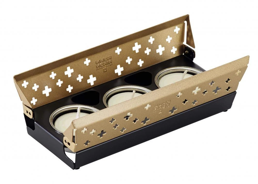 - Set bestehend aus Rechaud mit 3 Kerzen, Raclette-Pfännchen (antihaftbeschichtet) mit ergonomischem Griff und Schaber aus Kunststoff (antihaftbeschichtet)