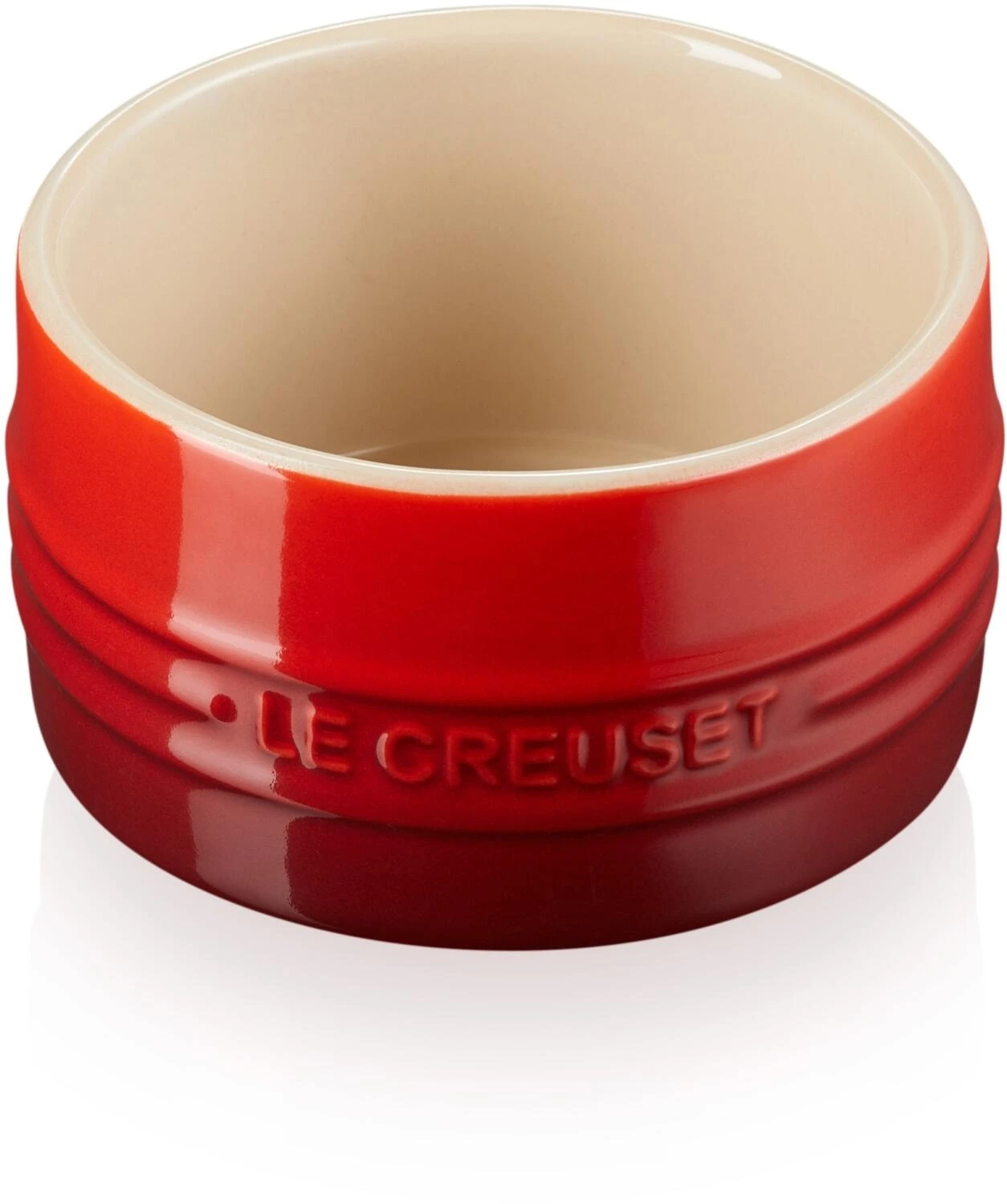 Le Creuset Förmchen in kirschrot. Dieses Förmchen bringt nicht nur Farbe in Ihre Küche, es ist auch perfekt geeignet, um einzelne Desserts, Vorspeisen, Tapas, Snacks und Häppchen zu servieren. Das hochwertige Steinzeug verteilt die Hitze gleichmäßig und die Speisen haften nicht an.