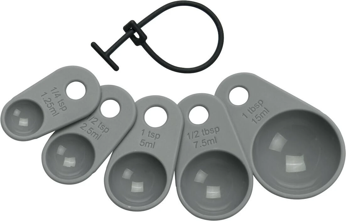 Messlöffel Set Silikon 5teilig flint grey mit Silikon-Befestigungsband