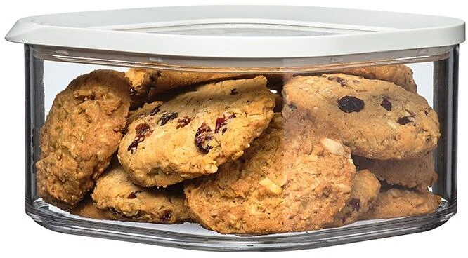 Vorratsdose Modula quadratisch 1250 ml, mit einem durchsichtigen Deckel mit weißem Ring. Die viereckige Dose mit abgerundeten Ecken hat ein Volumen von 1250 ml und ermöglicht einen direkten Blick auf den Inhalt, sogar in der Küchenschublade