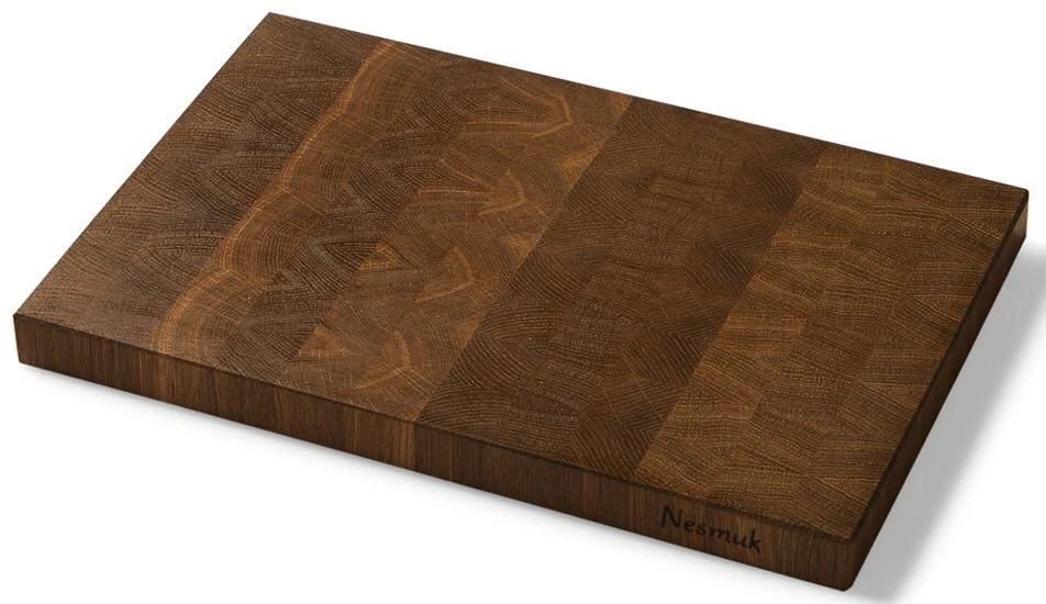 Das Essbrett der Marke Nesmuk überzeugt durch seine einzigartige Qualität, seine ästhetische Optik und zeitlos schöne Form. Es ist mit größter Sorgfalt aus bester süddeutscher Eiche gefertigt. Dabei wird nur der härteste Bereich des Holzes, das quer zur Faser geschnittene Hirnholz, genutzt. Das Eichenholz des Essbretts ist durch seinen hohen Gerbsäuregehalt von Natur aus antibakteriell und entspricht hohen hygienischen Anforderungen. Die leicht strukturierten Eichenleisten werden von Hand verlesen und präzise zusammengefügt. So entsteht ein charakteristisches, symmetrisches Muster, welches durch die schlichte Form noch verstärkt wird. Ein sehr feiner Oberflächenschliff und eine abschließende Behandlung mit Leinöl sorgen für eine edle Anmutung. Somit handelt es sich bei jedem Brett um ein Unikat, welches sich perfekt für jede Brotzeit und ideal zum Schneiden von Gemüse und Fleisch eignet. Das Essbrett ist nicht spülmaschinengeeignet und sollte von Hand gereinigt werden. Um die kräftige Farbe des Holzes zu erhalten, empfiehlt es sich die Oberfläche hin und wieder mit säurefreiem Öl z.B. dem Nesmuk Pflegewachsöl einzureiben.