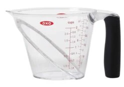 OXO hat das Ablesen von Flüssigkeiten mit diesem Messbecher revolutioniert: Durch die schräg verlaufende Messskala mit den Maßeinheiten in ml und cups ist kein ständiges Auffüllen, Überprüfen und Anpassen mehr nötig! Der weiche und rutschfeste Griff sorgt für einen festen Halt.