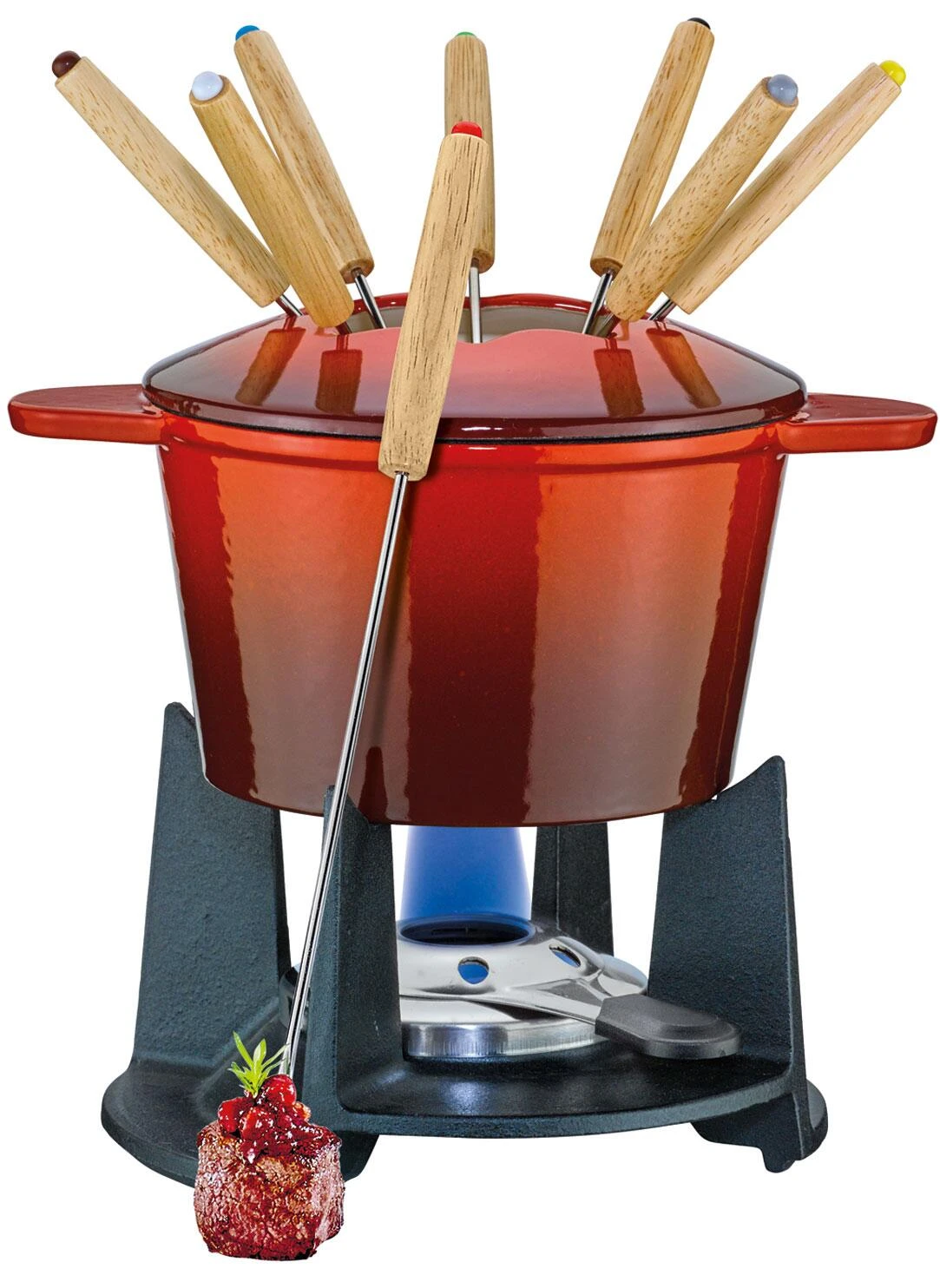 Spring Fondue-Set Grenoble in rot. Elegantes Fondue-Set aus robustem Gusseisen.