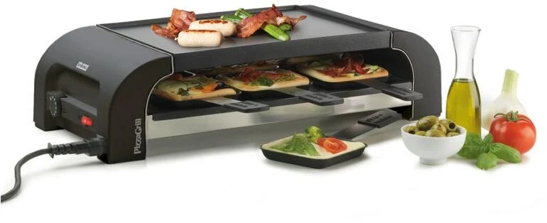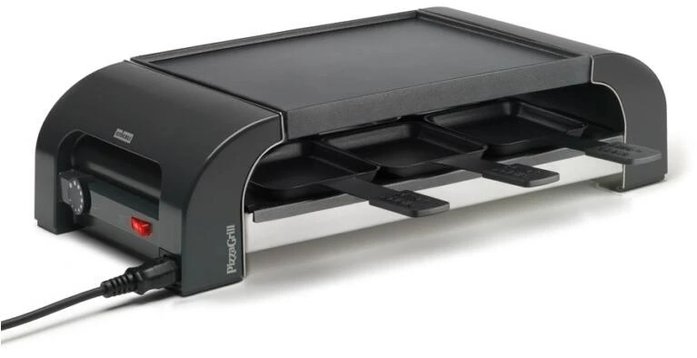 Stöckli Kombinationsgerät PizzaGrill For8 gilt als Multitalent im Bereich ’Kochen am Tisch’. Egal ob für zur Zubereitung von Minipizzas, Raclette oder Grilladen. Der Vielfalt sind keine Grenzen gesetzt! Mit dem PizzaGrill lassen sich 6 Personen auf originelle Art verpflegen. Mit zuschaltbarer Unterhitze, regulierbarer Oberhitze, antihaftversiegelter Grillplatte aus Aluguss, 6 Pfännchen mit Antihaftversiegelung, 6 Kunststoffspachtel und Teigausstecher.