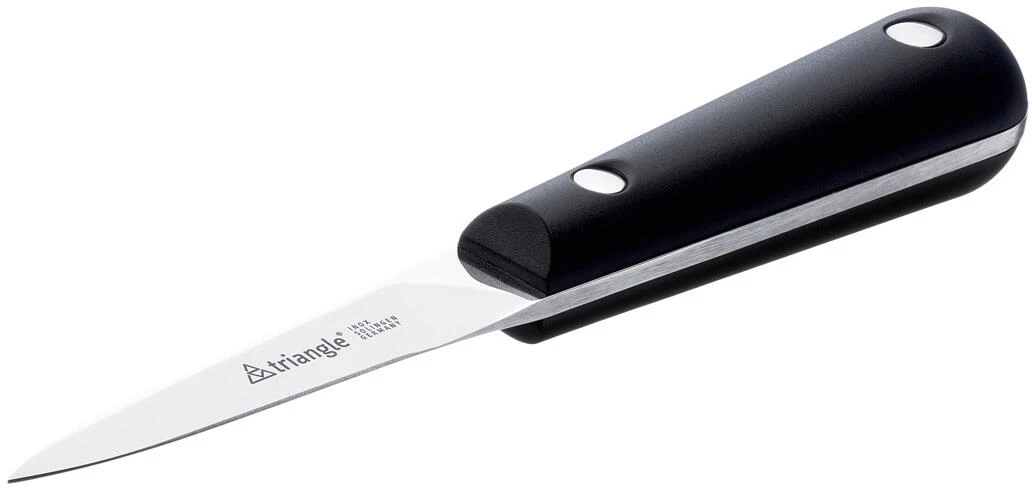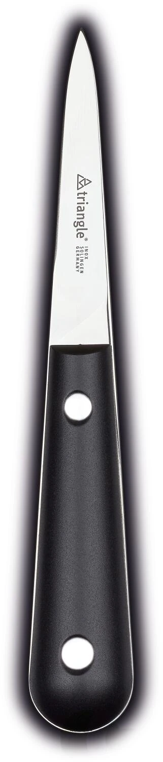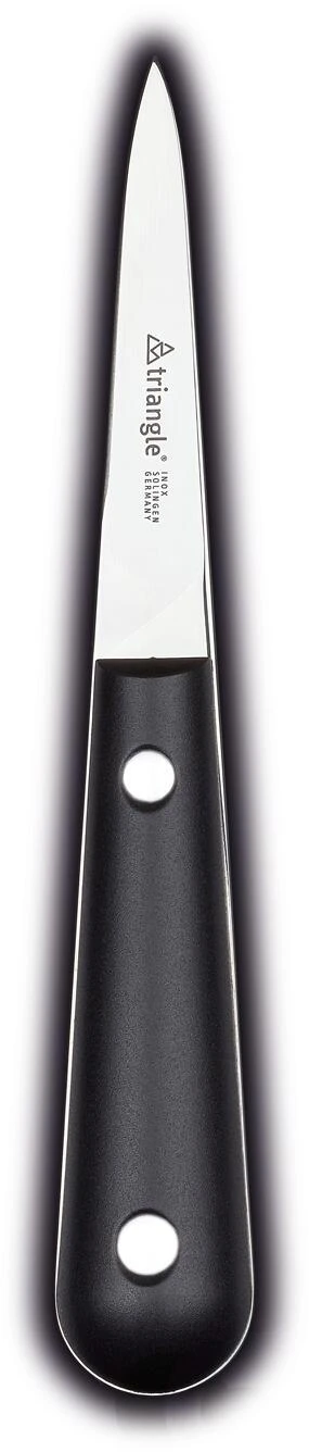 Austernmesser für den professionellen Einsatz mit genietetem Griff. Die Klinge ist schlank und gehärtet um ein müheloses Öffnen der Auster zu gewährleisten. Mit handgenietetem Griff aus hochwertigem, glasfaserverstärktem Kunststoff. Hergestellt in Solingen, Handreinigung empfohlen.