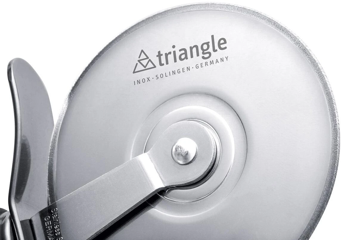 Der triangle Pizzaschneider ist sonders für den professionellen Einsatz geeignet. Das gehärtete und sorgfältig geschärfte Schneidrad aus Spezialstahl bleibt dauerhaft scharf, während die beidseitige Führung für viel Stabilität sorgt. Neben dem Schneiden und Portionieren von Pizza und Flammkuchen eignet er sich auf zum Zerteilen von selbstgemachtem Pastateig, Gebäckteigen oder für dünne Blechkuchen. Der Griff besteht aus robustem, glasfaserverstärktem Polyamid, bietet einen sicheren Halt und ist für den professionellen Gebrauch gefertigt. Rostfrei und spülmaschinengeeignet. Hergestellt in Solingen / Deutschland.