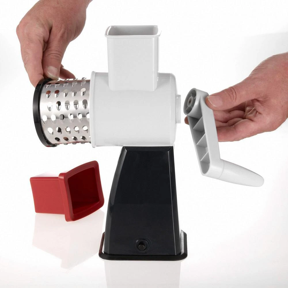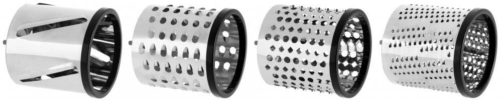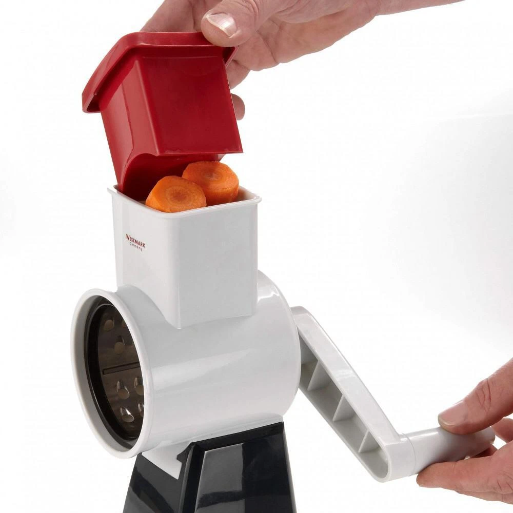Westmark Reibemaschine mit 4 Trommeln. Zum groben und feinen Reiben, Hobeln und Raspeln von Obst, Gemüse, Nüssen, Schokolade, Käse etc..